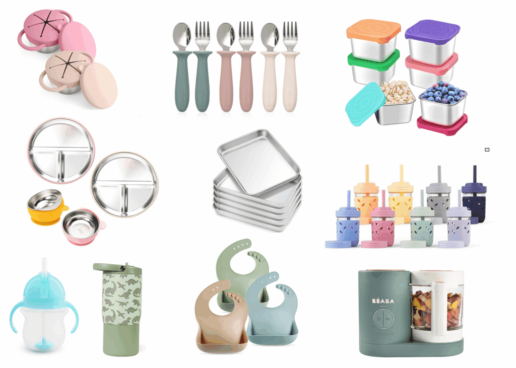 - Stainless steel easy grip utensils – again, love that these are stainless steel but still have a silicone grip so it’s easy for littles to hold & use!