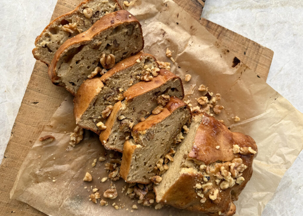 Okay, it’s time to *actually* make banana bread with those overripe bananas! This is my go-to, easy banana bread recipe because you just throw everything into a blender and voila, the perfect loaf! An added bonus is that this recipe is a tad more high protein than your typical banana bread because we are using Greek yogurt instead of any oils. Easy to make, and a cleaner recipe – a double win!