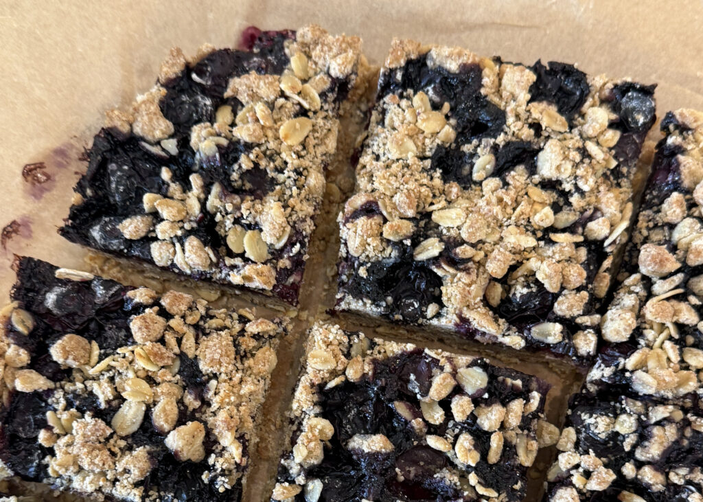 If you are in need of a homemade, delicious recipe that your whole family will love, you have to try these Blueberry Breakfast Bars! I like to whip these up in bulk and have them ready for breakfasts or even a snack for our kiddos on busy week. They give the nostalgic Nutragrain vibes – but without all of the processed junk. These are sweet, soft yet crumbly…and delicious cold out of the fridge on their own, or warmed up with some greek yogurt served on top. Heck, you could even make this a dessert and serve with vanilla ice cream. The options are endless!