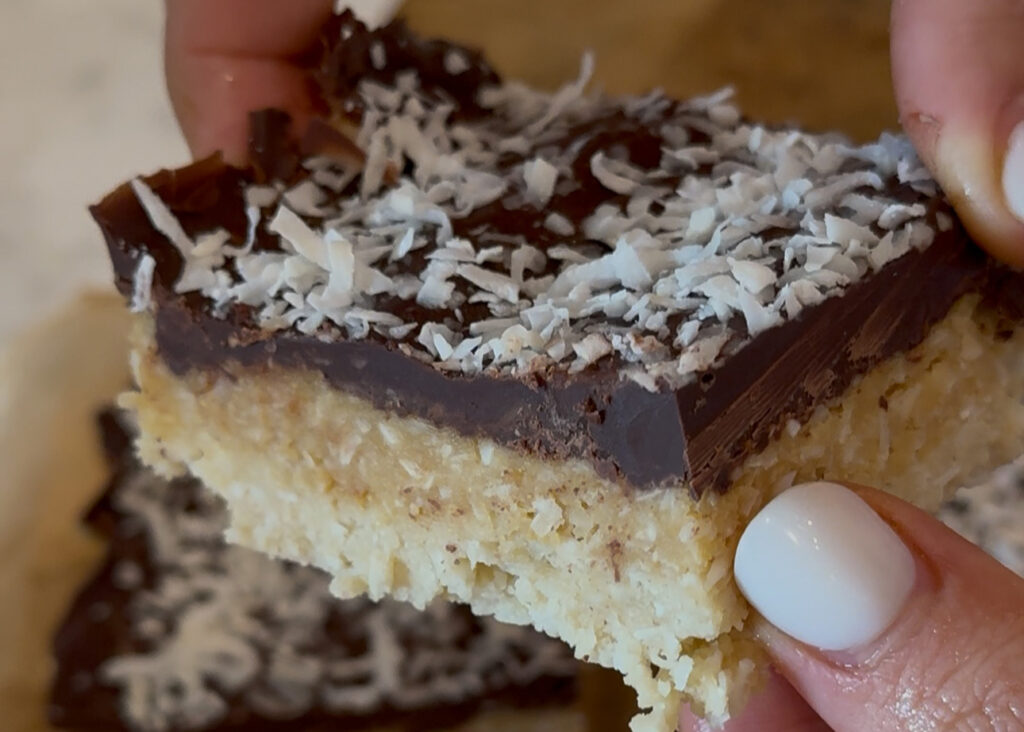 There are few things that are as nostalgic as a Samoa Girl Scout Cookie. It’s one of my favorite flavor combinations when it comes to a dessert. Y’all know that one of my favorite things to do is turn some of my favorite classic sweet treats, into a homemade recipe with a little extra protein as long as it does *not* compromise the flavor or texture…and we did it with these Protein Samoa Bars!