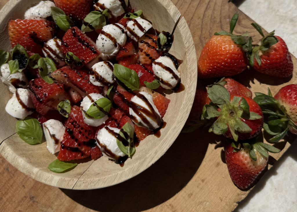 - Combine strawberries & mozzarella in a bowl and toss until combined.